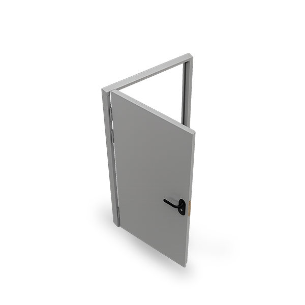 Дверной блок состоит из нескольких сборочных единиц. Основную часть составляет коробка, в которую вставляются металлические полотна – она задействуется для закрепления в откосах проема, оставленного в стеновых конструкциях. Полотняные вставки фиксируются на раме посредством подвижных связей.
