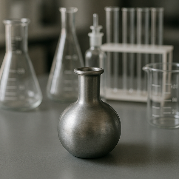 Металлическая колба Пл 99,9 подходит для работы с кислотами, щелочами и органическими растворителями. Её инертность делает изделие незаменимым для точных аналитических исследований.