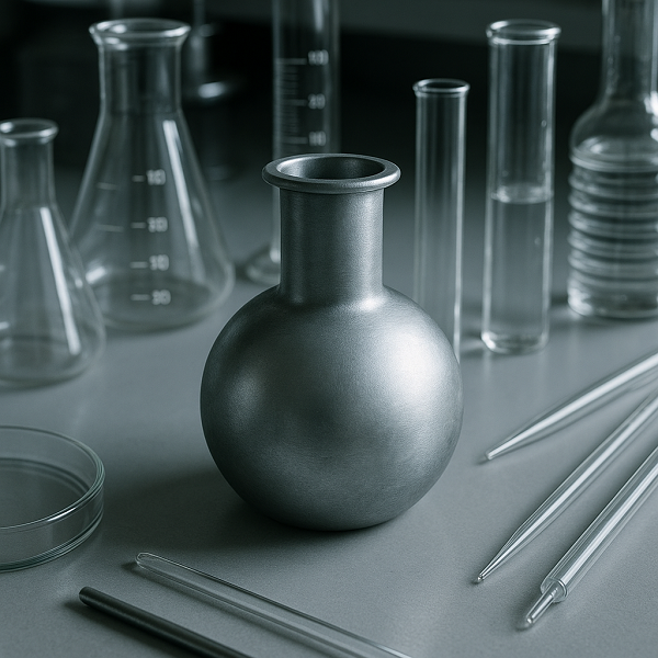 Круглодонная металлическая колба с низким горлом разработана для выполнения точных химических операций. Её форма обеспечивает равномерное распределение тепла и минимизирует риск локального перегрева.